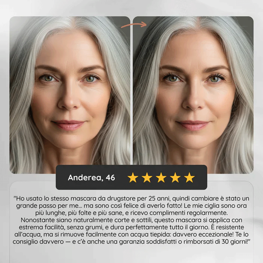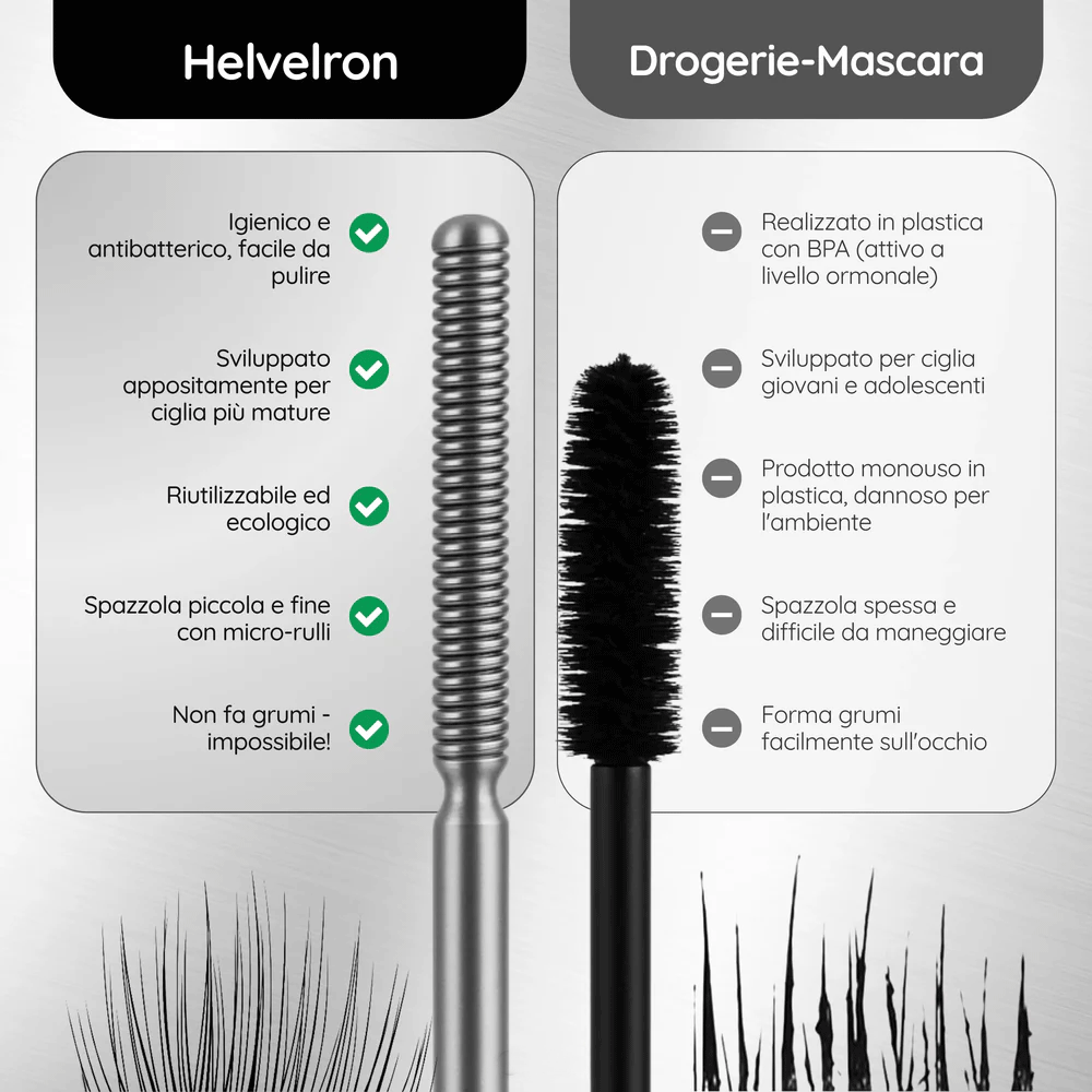 Treno, riunioni e umidità: con gli altri mascara arrivavo a pranzo con aloni scuri. Con HelveIron™ il trucco resta pulito fino a sera, senza ritocchi."
